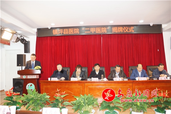儀式上,市衛(wèi)健委宣讀了《關(guān)于授予鎮(zhèn)坪縣醫(yī)院二級甲等綜合醫(yī)院的批復(fù)》;楊彬和蔡小安為鎮(zhèn)坪縣醫(yī)院“二級甲等”醫(yī)院揭牌。儀式上,蔡小安、楊彬分別致辭,對鎮(zhèn)坪縣醫(yī)院獲得“二甲”醫(yī)院稱號表示祝賀并寄予深切厚望,希望鎮(zhèn)坪縣醫(yī)院全體職工繼續(xù)發(fā)揚(yáng)艱苦奮斗、勇于拼搏的精神,抓住機(jī)遇,乘勢而上,在改革中探索,在管理上創(chuàng)新,在業(yè)務(wù)上求精,辦好鎮(zhèn)坪人自己的醫(yī)院,辦成老百姓滿意的醫(yī)院,為助力健康扶貧做出更大貢獻(xiàn)。陳文乾對鎮(zhèn)坪縣醫(yī)院以二甲創(chuàng)建為抓手,加強(qiáng)醫(yī)療質(zhì)量安全管理,落實(shí)醫(yī)療核心制度,實(shí)現(xiàn)了醫(yī)院零糾紛的好成績,是2019年濃墨重彩的一筆。更加堅(jiān)定了對口支援鎮(zhèn)坪縣醫(yī)院的決心和信心,并對緊密型醫(yī)共體建設(shè)和與鎮(zhèn)坪縣的醫(yī)養(yǎng)聯(lián)合體提出了意見和合理化建議。