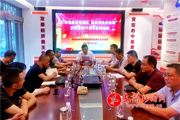 本網(wǎng)訊(通訊員 歐佩)7月1日,鎮(zhèn)坪縣市場監(jiān)督管理局機(jī)關(guān)黨支部組織開展“市場監(jiān)管黨旗紅 黨員帶頭爭先鋒”慶祝建黨99周年系列活動(dòng)。通過集中學(xué)習(xí)習(xí)近平總書記來陜考察重要講話重要指示精神、觀看微視頻《從紅船到巨輪》、重溫入黨誓詞、表彰10名疫情防控先進(jìn)個(gè)人、支部書記講黨課、開展黨建知識(shí)競賽等多種形式,共同慶祝建黨99周年。