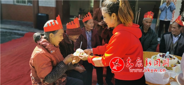 活動上,中心村四支隊伍還為在農(nóng)歷9月1日至9月15日期間過生日的老人送上生日蛋糕、獻上生日祝福歌,為兩位80歲以上老人獻上鮮花,大壩村志愿者朱傳培免費為留守老人理發(fā),每個人都用自己的實際行動踐行著敬老、愛老的傳統(tǒng)美德。汪杜娟說:“像這樣的活動,我們村已經(jīng)連續(xù)兩年在重陽節(jié)開展了,主要是通過各種活動來關(guān)心關(guān)愛老年人,讓他們感受到黨的關(guān)懷和社會的溫暖。”