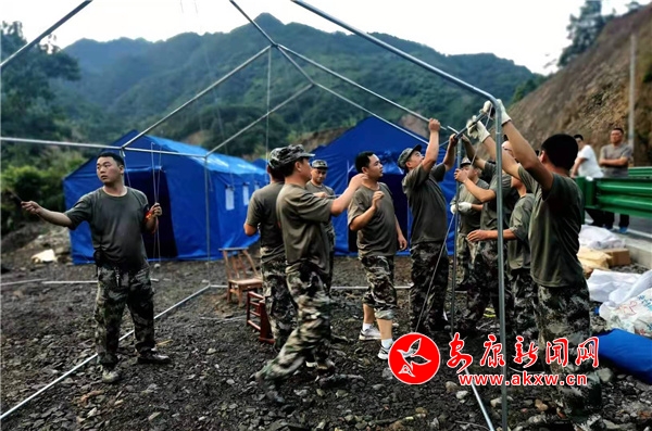 這支隊(duì)伍到達(dá)現(xiàn)場(chǎng)后,立即組織轉(zhuǎn)移受災(zāi)群眾、轉(zhuǎn)移物資、搭建帳篷......他們的到來極大地增強(qiáng)了受災(zāi)群眾的信心,軍民一心,團(tuán)結(jié)抗災(zāi),一場(chǎng)緊急而有序的搶險(xiǎn)行動(dòng)迅速展開。
