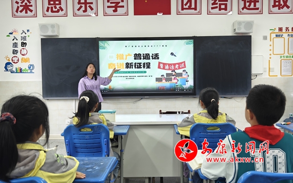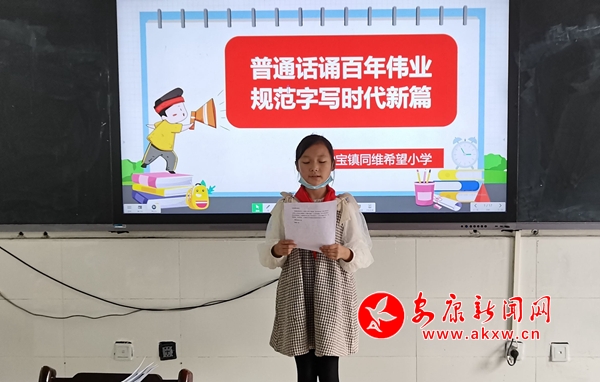 在課間,學(xué)校師生以具體形象、通俗易懂的語言,詮釋了自己對(duì)普通話和規(guī)范簡(jiǎn)化字的認(rèn)識(shí)。在主題班會(huì)上,各班借助PPT、宣教片等形式向?qū)W生科普了普通話的由來、普通話水平等級(jí)、不規(guī)范簡(jiǎn)化字、《通用語言文字法》的解讀、文學(xué)名著中的偏僻字音等知識(shí),號(hào)召大家“講普通話,寫規(guī)范字”,積極主動(dòng)地弘揚(yáng)民族語言文化。