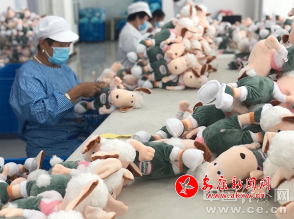 為了讓那些不能或不愿外出務工的農(nóng)戶增收有門路,陜西省紫陽縣毛壩鎮(zhèn)2018年9月從江蘇省揚州市引進迪鑫玩具工廠,從事毛絨玩具生產(chǎn)加工。