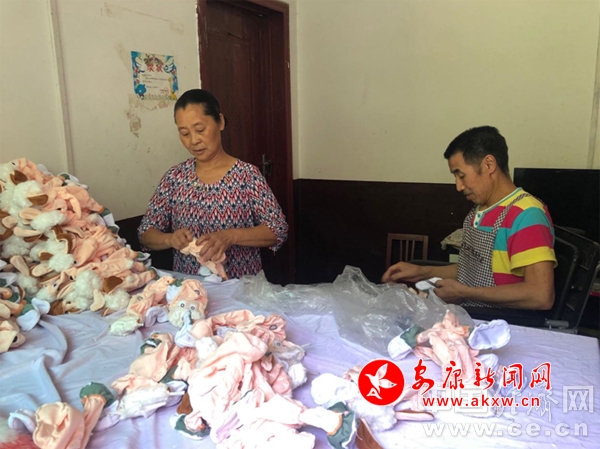 通過集中管理,使一大批村民逐步從自由散漫的農(nóng)民,轉型為有組織有紀律的產(chǎn)業(yè)工人。特別是還吸納11名男性村民投身毛絨玩具生產(chǎn)加工,其中年齡最大的68歲、最小的19歲。
