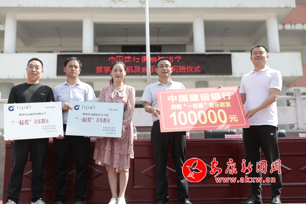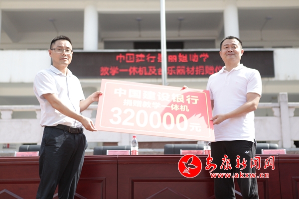 本網(wǎng)訊 (通訊員 劉成軍)金秋送爽,丹桂飄香。9月18日下午,由中國建行向紫陽縣高橋鎮(zhèn)初級中學(xué)捐贈的教學(xué)一體機(jī)及音樂教室設(shè)施設(shè)備的捐贈儀式在該校操場舉行,紫陽縣縣委常委、副縣長張雪峰出席捐贈儀式,麗姐助學(xué)負(fù)責(zé)人孫麗、鎮(zhèn)相關(guān)領(lǐng)導(dǎo)及高橋中學(xué)全體師生參與活動。