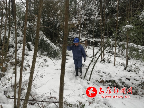 災情面前,刻不容緩。工作人員緊急集結,先對停電區(qū)域的線路設備進行全面巡視,掌握災情,檢查倒桿斷線等情況,對危險路段安排多人步行巡視,防止發(fā)生其他安全意外。為盡快恢復供電,搶修人員按照先易后難、先主后分、先重點后末端的步驟實施搶修。