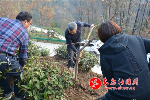 植樹造林,功在當下,利在千秋。該局黨員干部分工協(xié)作,干勁十足,拿起鐵鍬、鋤頭相互配合,有的揮鍬鏟土、有的扶樹填土、澆水,忙得不亦樂乎,整個植樹活動現(xiàn)場一片熱火朝天的勞動景象。經(jīng)過緊張有序的勞動,從外地引進的30余株桃樹幼苗在地塊“安家落戶”,在牛年新春奏響了綠色的希望。