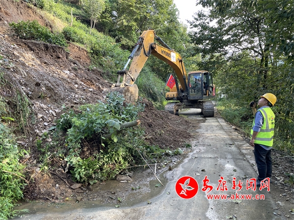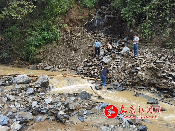 同時,新桃村組織青年黨員、群眾百姓等科學(xué)開展生產(chǎn)自救,進行房屋清理、道路搶通、疏通清淤、險情排除等工作。為保障村民正常用水,村委會安排組織運水大軍,修復(fù)受損管道,修繕蓄水池;挖土機挖通因嚴(yán)重滑坡而造成的受損路段后,群眾自發(fā)帶著鋤頭和鏟子,挖出一條簡易小道,方便救災(zāi)人員通行。