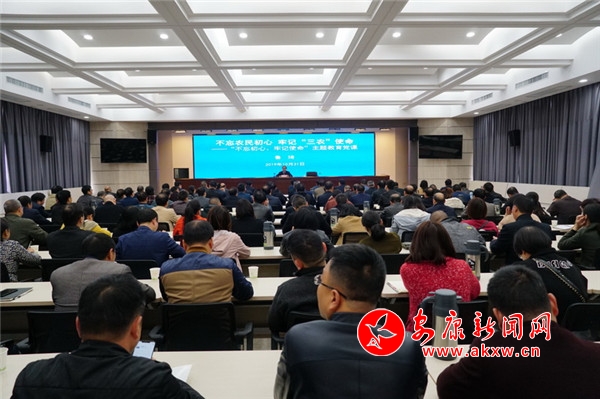本網(wǎng)訊 10月31日上午,副市長魯琦緊扣“不忘初心、牢記使命”主題教育,以“不忘農(nóng)民初心、牢記‘三農(nóng)’使命”為題,給分管部門黨員干部講黨課。市農(nóng)業(yè)農(nóng)村局、市水利局、市林業(yè)局、市民政局、市富硒辦、市供銷社、市殘聯(lián)等農(nóng)口部門黨員干部及市政府辦部分黨員干部參加。