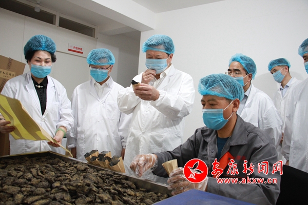 馬曉旬一行先后來到咸陽秦御茯茶有限公司、涇渭茯茶有限公司、仙喜辣木茯茶有限公司,走進展銷區(qū)、生產車間、手工茶作坊、倉儲室,詳細了解茯茶發(fā)展思路、生產工藝、原料供應、展銷等情況。