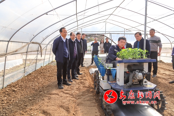 在漢陰縣七葉蓮農(nóng)業(yè)科技有限公司蔬菜種植基地,魯琦走進(jìn)溫室育苗棚和蔬菜大棚,詳細(xì)了解辣椒、黃瓜、西紅柿等蔬菜育苗及旋耕機(jī)整地、辣椒機(jī)械化栽植情況,對公司“六統(tǒng)一”發(fā)展方式給予充分肯定。他說,要以“1+10+N”蔬菜保供基地建設(shè)為契機(jī),圍繞提升設(shè)施裝備、科技支撐、組織經(jīng)營現(xiàn)代化水平,聚力推進(jìn)高標(biāo)準(zhǔn)農(nóng)田、冷鏈物流等基礎(chǔ)設(shè)施建設(shè),持續(xù)在農(nóng)機(jī)推廣、質(zhì)量控制、品牌打造、產(chǎn)銷對接上下功夫,加快完善蔬菜生產(chǎn)保供體系,不斷提升蔬菜自給率,確保“菜籃子”安全穩(wěn)產(chǎn)保供。kqW安康新聞網(wǎng)