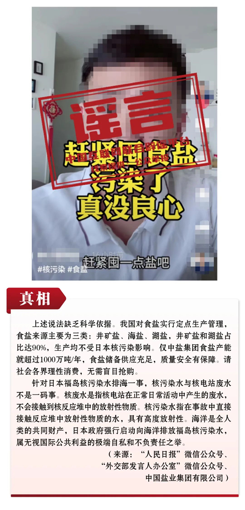 炒作社會(huì)熱點(diǎn),造成負(fù)面影響。8月,社會(huì)熱點(diǎn)話題頗多,一些自媒體利用公眾對(duì)社會(huì)熱點(diǎn)事件的關(guān)心,夸大事實(shí)甚至惡意炒作,對(duì)社會(huì)造成較大負(fù)面影響。如日本政府不顧國(guó)內(nèi)外堅(jiān)決反對(duì),悍然啟動(dòng)核污染水排海,食品安全問題隨之備受關(guān)注。有人為發(fā)不義之財(cái),趁機(jī)散布“福島核污染水排海,食用鹽不安全”等不實(shí)信息,誘導(dǎo)不明真相群眾跟風(fēng)搶鹽囤鹽,嚴(yán)重?cái)_亂正常市場(chǎng)秩序。緬北電信詐騙話題熱度持續(xù)升高之際,有人編造傳播“重慶某公司以出國(guó)團(tuán)建之名將員工騙至緬北”謠言,惡意炒作、制造恐慌,造成不良社會(huì)影響。此外,“深圳出現(xiàn)大量斷供房”“青島火車站停運(yùn)”等不實(shí)信息或夸大其詞,或無(wú)中生有,企圖吸引眼球、博取關(guān)注,影響社會(huì)信任。