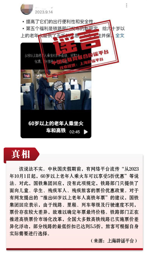 謠言3:今年國(guó)慶后老年人可半價(jià)購(gòu)買火車票?