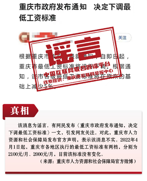 謠言5:重慶決定下調(diào)最低工資標(biāo)準(zhǔn)?