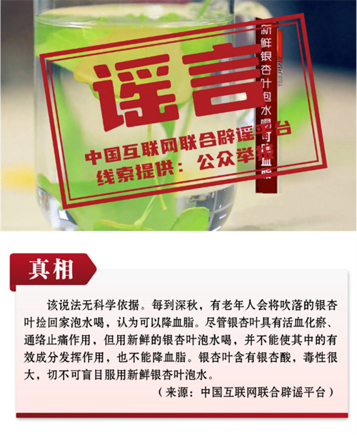謠言9:秋天的新鮮銀杏葉泡水喝,可降血脂?