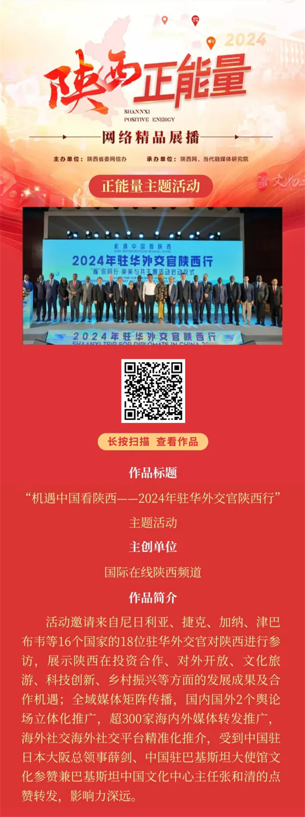 2024陜西正能量網(wǎng)絡(luò)精品展播丨正能量主題活動(dòng):機(jī)遇中國(guó)看陜西——2024年駐華外交官陜西行主題活動(dòng)