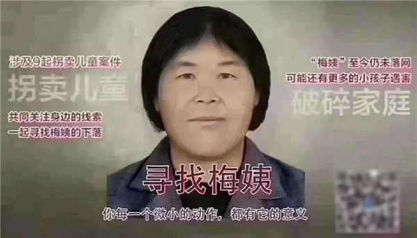 近日,一張呼吁大家尋找人販子“梅姨”的圖片在朋友圈廣泛流傳。