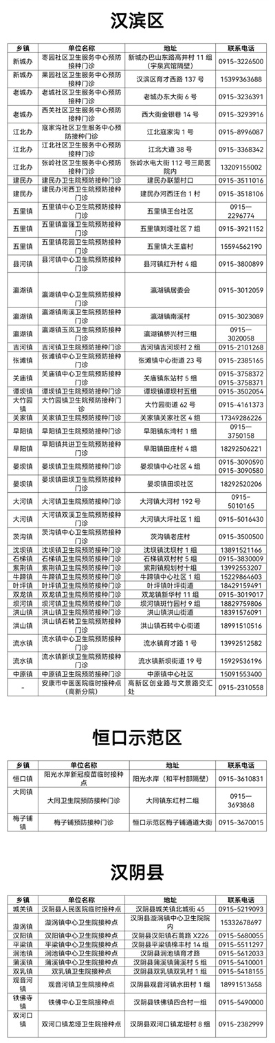 答:目前安康各鄉(xiāng)鎮(zhèn)、社區(qū)預防接種門診均可接種新冠疫苗,具體接種點位附后。