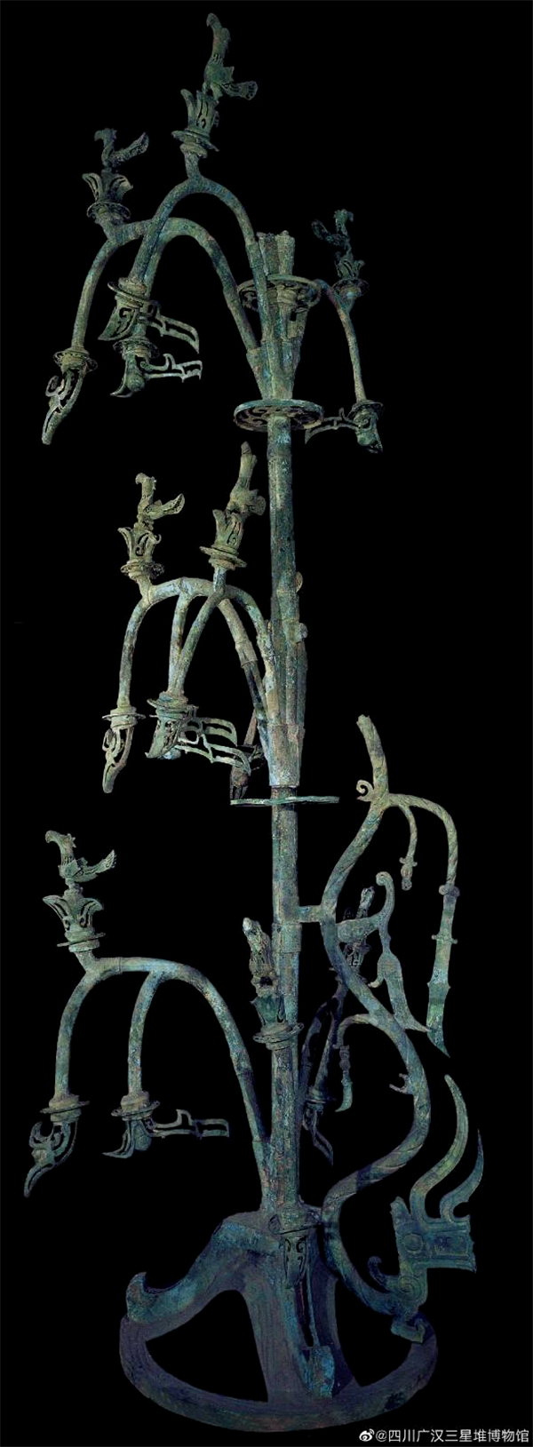 三星堆二號祭祀坑出土的青銅神樹。圖據(jù)三星堆博物館