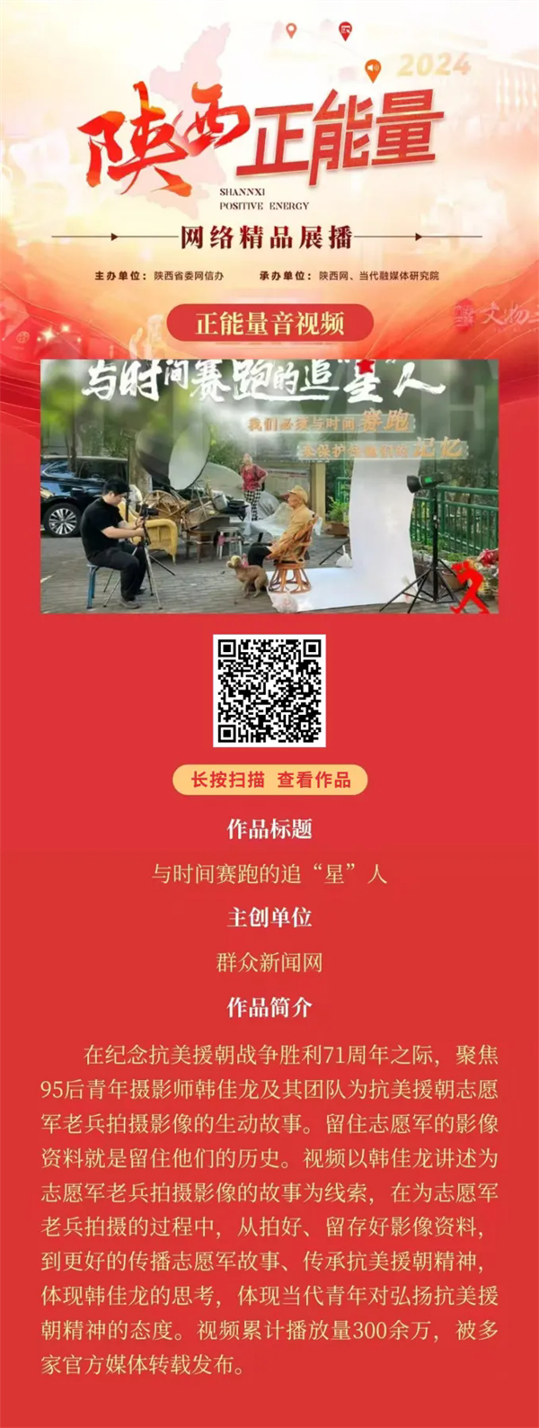 2024陜西正能量網(wǎng)絡(luò)精品展播丨正能量音視頻:與時(shí)間賽跑的追“星”人