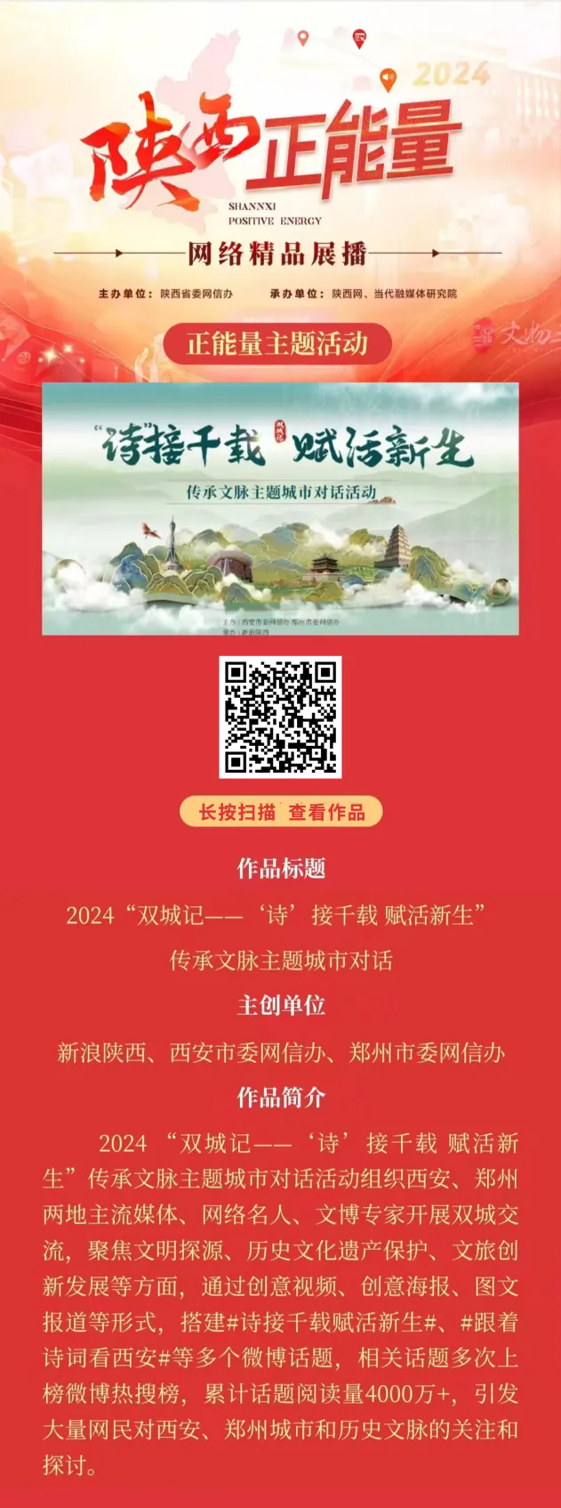 2024陜西正能量網(wǎng)絡(luò)精品展播丨正能量主題活動:2024“雙城記——‘詩’接千載 賦活新生”傳承文脈主題城市對話