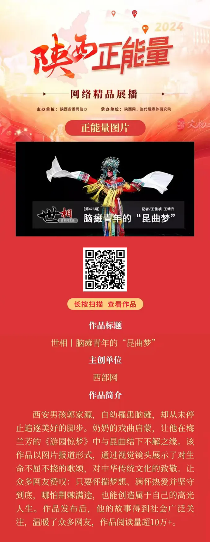 2024陜西正能量網(wǎng)絡精品展播丨正能量圖片:腦癱青年的“昆曲夢”