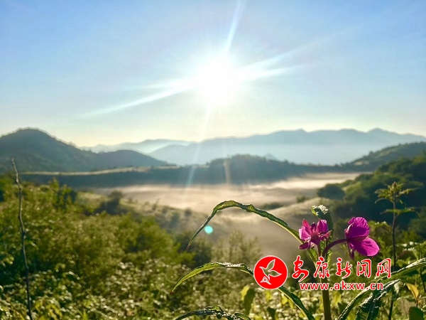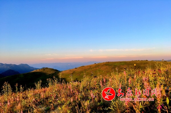 甸內(nèi)不知名的小花爭相綻放。遠(yuǎn)觀整個草甸呈現(xiàn)出一片朦朦朧朧的粉綠,置身其中,會感覺到一種無比浪漫的溫馨。iYr安康新聞網(wǎng)