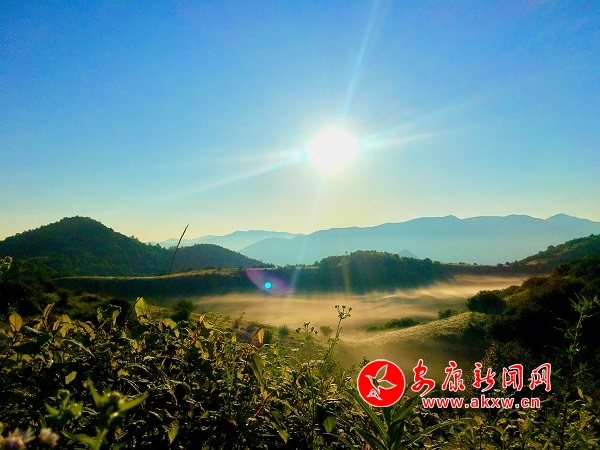 初陽下,萬道金光里,襯托著天邊露白,云霧徘徊山巒之間久久不散。iYr安康新聞網(wǎng)