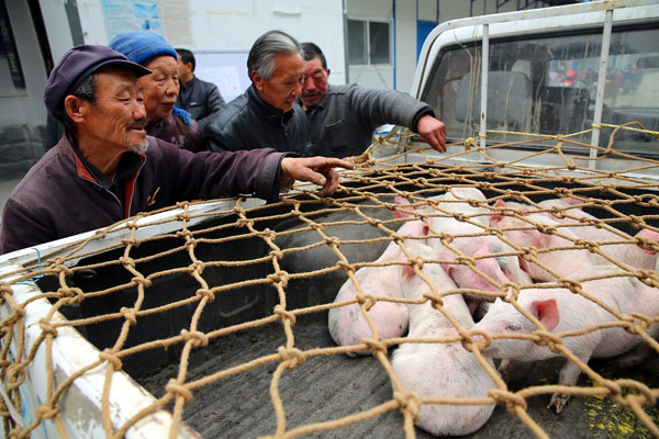 3月7日,花石村的貧困戶正在領(lǐng)取免費(fèi)豬仔安康新聞網(wǎng)訊(通訊員 楊寧)“今年開(kāi)年后,鎮(zhèn)上和部門(mén)的干部多次來(lái)我家。先是到我家來(lái)了解情況,春節(jié)還給我們送來(lái)了米……