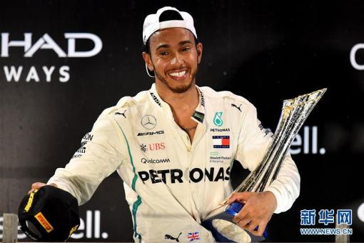 11月25日,漢密爾頓在領(lǐng)獎(jiǎng)臺(tái)上慶祝奪冠。 當(dāng)日,2018賽季世界一級(jí)方程式賽車錦標(biāo)賽(F1)最后一站比賽在阿聯(lián)酋阿布扎比結(jié)束爭(zhēng)奪,梅賽德斯車隊(duì)英國(guó)車手漢密爾頓……