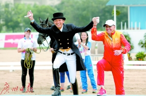 2001年九運(yùn)會(huì)至今,廣東馬術(shù)隊(duì)在每屆全運(yùn)會(huì)上都有2枚金牌入賬,這段時(shí)間也是拜里亞爾森執(zhí)教廣東隊(duì)的時(shí)期,她也和廣東隊(duì)的老將新兵建立了親密的友誼。本屆全運(yùn)會(huì),拜里亞爾森和弟子兩次站上最高領(lǐng)獎(jiǎng)臺(tái),收獲了盛裝舞步團(tuán)體和個(gè)人2枚金牌,這也是她帶隊(duì)史上第一次。廣東馬術(shù)隊(duì)時(shí)隔8年問鼎盛裝舞步團(tuán)體賽,賽后,老將黃焯欽以手掩面、失聲痛哭。拜里亞爾森走上前去,撫摸著戰(zhàn)馬,安慰他!拔业攘颂昧恕!秉S焯欽說(shuō)著,與拜里亞爾森緊緊擁抱在一起。