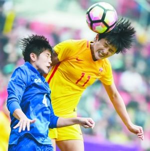 次戰(zhàn)面對泰國隊,中國隊很快就占據(jù)場面上的主動。第6分鐘王霜主罰右側(cè)角球,直接旋向近角導致皮球擊中近端立柱,將對方門將嚇出一身冷汗。第13分鐘王珊珊倒地掃射、第19分鐘王霜的遠射都一次次考察著泰國隊門將波辛緊張的神經(jīng)。第20分鐘王霜接直塞球轉(zhuǎn)身抽射,波辛撲球后開球門球,卻直接開到中國隊禁區(qū)前沿,馬君解圍踢空,高速插上的坎加娜吊射命中,被動的泰國隊意外取得領先。好在中國隊沒讓對手得意太久,第30分鐘王霜搶點爭頂被破壞,皮球恰好落到王珊珊身前,她頭球沖頂將球送入空門,半場雙方1比1戰(zhàn)平。
