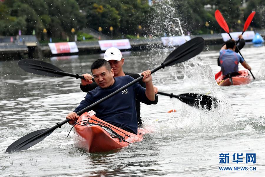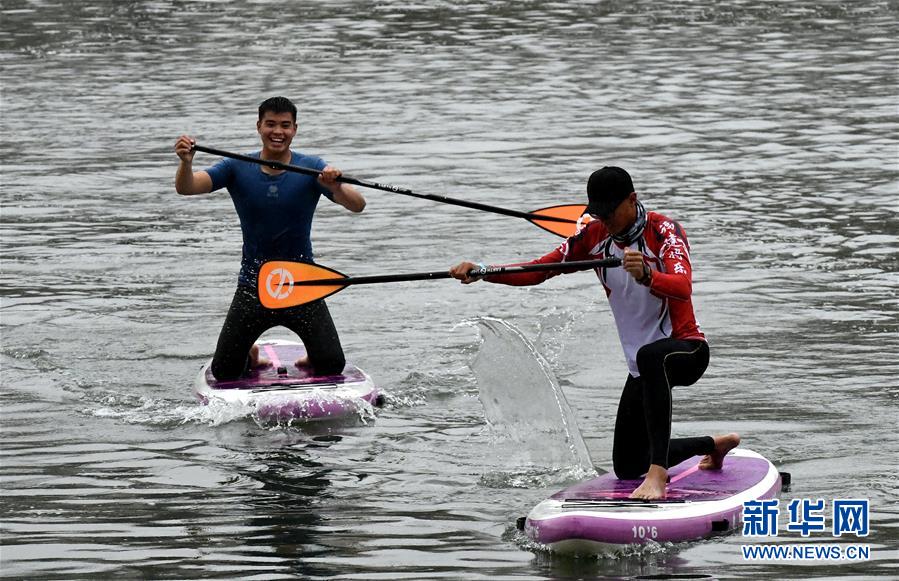 ↑11月16日,皮劃艇拔河賽選手在比賽中。 當(dāng)日,2018年福建將樂皮劃艇趣味賽在將樂縣金溪河開賽。本次比賽設(shè)皮劃艇拔河、皮劃艇接力、槳板競(jìng)渡3個(gè)項(xiàng)目,吸引了福建、吉林等國內(nèi)120名選手參與。 新華社記者彭張青攝