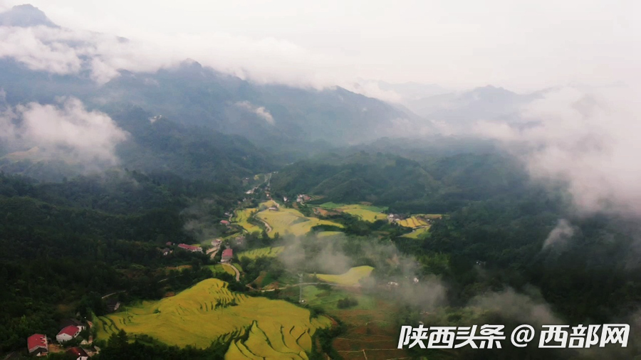 西部網(wǎng)訊(通訊員 彭東雁) 9月13日,霏霏細(xì)雨過(guò)后,世界首次異地野化放飛朱鹮基地——寧陜縣城關(guān)鎮(zhèn)寨溝村,云霧繚繞,青山如黛,層層梯田猶如錦緞,秋色盡顯,美不勝收。59x安康新聞網(wǎng)