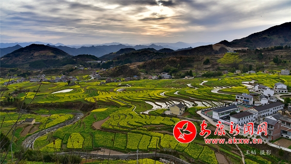 依著山勢,那些黃綠色,繪出最自然的線條。遠山如黛,陪著田埂上老農(nóng)和耕牛,默契的一起把身影倒影在水田。點綴在田園民居的炊煙裊裊,如緩緩落下的夕陽,靜謐、悠然,讓人眷戀。