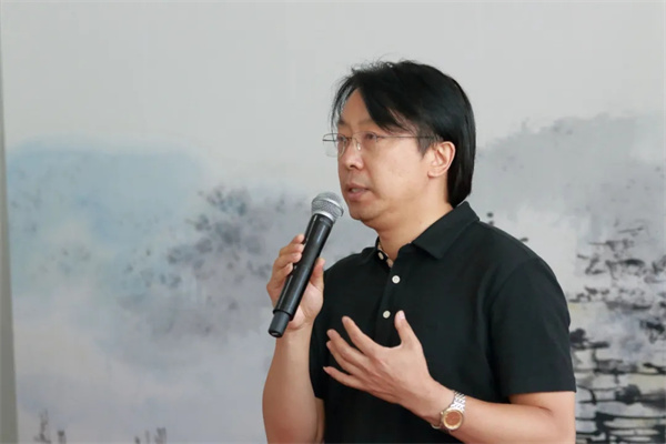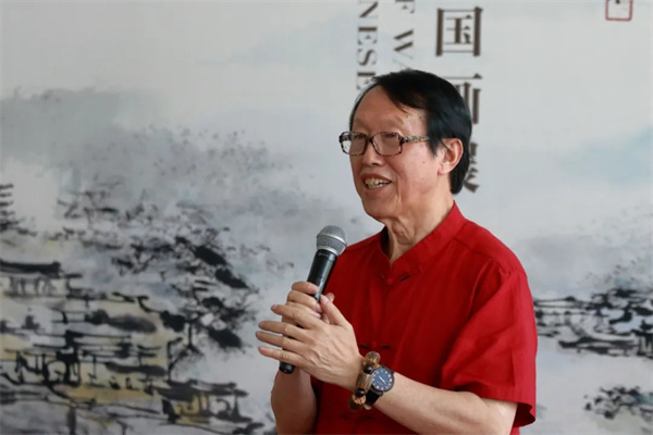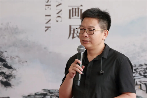 于洋在致辭中表示,“王福元先生的作品之所以被觀者所認(rèn)同,被畫壇所稱道,正是源于他對藝術(shù)的執(zhí)著態(tài)度,及其作品顯現(xiàn)出的鮮明藝術(shù)特色和濃郁的個人風(fēng)格。其作品的個人特色主要體現(xiàn)在三個方面:其一,王福元先生長于色彩,并獨(dú)創(chuàng)‘幻彩’畫法。他不囿于傳統(tǒng)山水畫色彩的固有程式,其作品色彩鮮活、生動清透,筆下的江南山水玲瓏剔透、氤氳朦朧,同時色彩絢爛,極具觀賞性,作品色彩張力和視覺沖擊力強(qiáng);其二,王福元先生的山水畫具有綜合跨界性,借鑒了繪畫領(lǐng)域外其他藝術(shù)門類的風(fēng)格。王福元先生長于音律,能演奏笛、蕭等樂器,因此他的山水畫有以音律入畫、注重意蘊(yùn)表達(dá)的特點(diǎn),具有很強(qiáng)的節(jié)奏感和律動感。其三,他的山水畫具有很強(qiáng)的筆墨、色彩、圖式的個人特點(diǎn)。與北方山水不同,江南山水因其獨(dú)特的地域性,具有一派平遠(yuǎn)的景象。他把個人思考和表現(xiàn)風(fēng)格化育在清透的江南文人水鄉(xiāng)氣象之中,在承續(xù)傳統(tǒng)文脈的同時也顯現(xiàn)了地域文化性格,這是十分可貴的。正因?yàn)檫@三個方面的特點(diǎn),我覺得王福元先生筆下的江南山水既是南派山水畫自古以來變遷中的一種發(fā)展,也是他通過自身的綜合思考和知行合一的積淀所衍生出來的個人風(fēng)格。”。