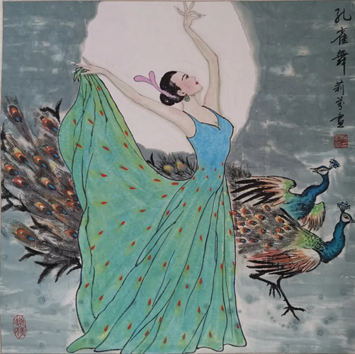 解大姐是陜北人,性格開朗、直率,說話中間或帶出一些濃重的陜北口音。雖說她主業(yè)從于政界,但她微笑的背后卻潛藏著不可掩飾的藝術天賦,揮發(fā)著令人奪目的藝術才情。繁雜的政務工作之余,她創(chuàng)作不輟,堅持不懈,居然在多個藝術門類收獲頗豐,好評連連。寫小說,她寫出幾十萬字的長篇出版發(fā)行;寫劇本,竟拍成了電影予以公映;學國畫,亦讓藝術界的大咖贊口不絕。我雖不才,空有浮名,但深耕藝界多年,對于其中的好賴還能分出一二。我感到,一個人的人品和藝品基本一致,解大姐的藝術,是扎根于她熟悉的陜北大地的藝術,是生長在山峁峁上經歷風霜雨雪的藝術,就像那陜北倔強的疙瘩柳,散發(fā)著對土地對生活的親近和熱情,對人生價值實現的不屈和追求。看到她的國畫新作,有陜北剪紙等民間藝術的滋養(yǎng)和影響,真切而樸實。她的飛天人物系列,泥古而不落窠臼,使我想到疙瘩柳條隨風擺動的婀娜風姿,溫溫潤潤,令人遐思和向往;她的花鳥畫作,使我想到陜北山野一片蒼茫之間,一朵兩朵盛開的山丹丹花,嬌艷得令人不忍觸手;她的山水畫作,又猶如陜北山原上嫩黃的棗花,洋溢著撲面而來的質樸、清新和率真之氣。