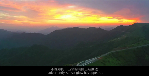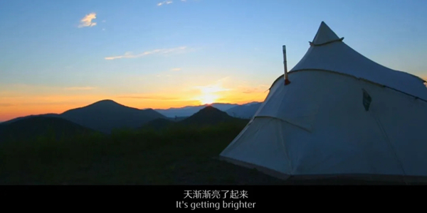 天漸漸亮了起來(lái),越過(guò)重重山脈的陽(yáng)光 映紅了云層,照亮了山谷,催醒了沉睡的動(dòng)物,一頂頂帳篷像隆起的蘑菇 生⻓在云端之上。