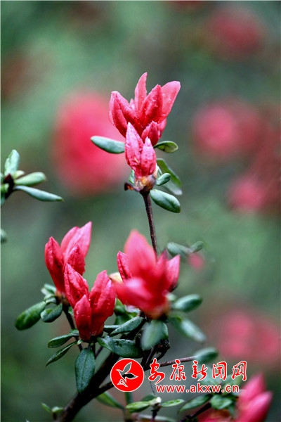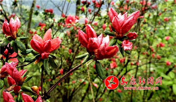 變焦鏡頭下,水珠盈盈欲滴的映山紅,張開每一寸毛孔,大口大口地呼吸。吐納之間,是風(fēng)里春天的氣息,是雨里植物的拔節(jié)。不留神闖入這勝境的人們,便醉倒于負(fù)氧離子的懷抱。琳瑯風(fēng)雨過(guò)后,漫山遍野都沾染上水的晶瑩,大地的飽和度被調(diào)至清明,每一片樹葉都在私語(yǔ),每一棵枝條都閃著盈光。