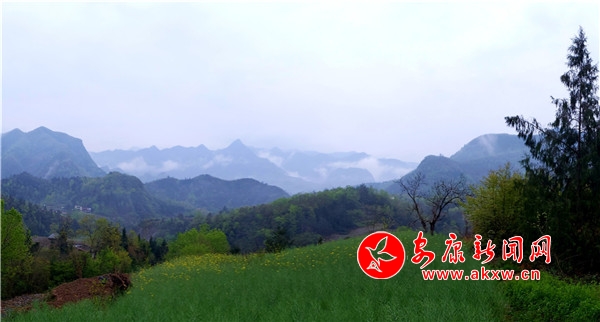 那些嫩綠、芽綠、粉綠、蒼綠、翠綠……渾然一體的漸變,層次分明的流動(dòng),是時(shí)光的穿梭,是歲月的更迭,是人間四月天別樣的溫柔。亂云飛渡,雨絲風(fēng)片,起伏丘壑,流嵐如青鳥的羽翼,輕輕一掃,山河便幻化成瑤臺(tái)仙境。